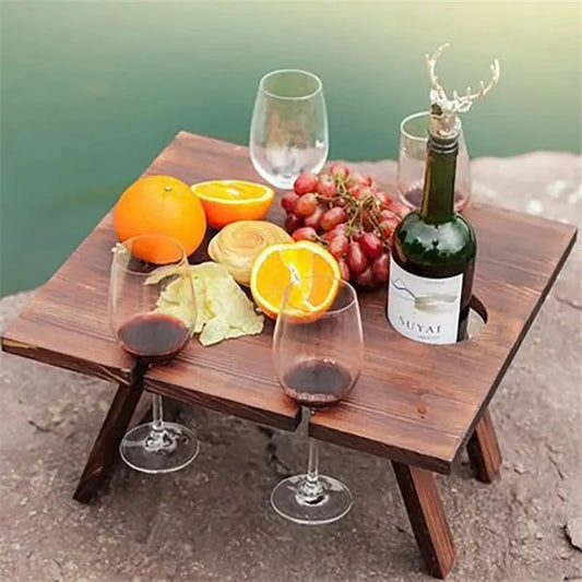 Portable Folding Picnic Table Family Lovers Outdoor Party Goblet Holder Wine Rack 2in1 Fruit Snacks Wooden Travel Dining Table