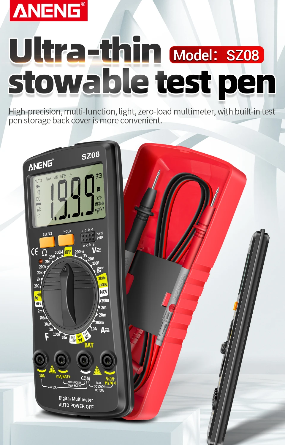 ANENG SZ08 Digital Ultra-thin Multimeter Storage Professional Meter Auto Voltmeter AC DC 220V Resistance Handhold Testers
