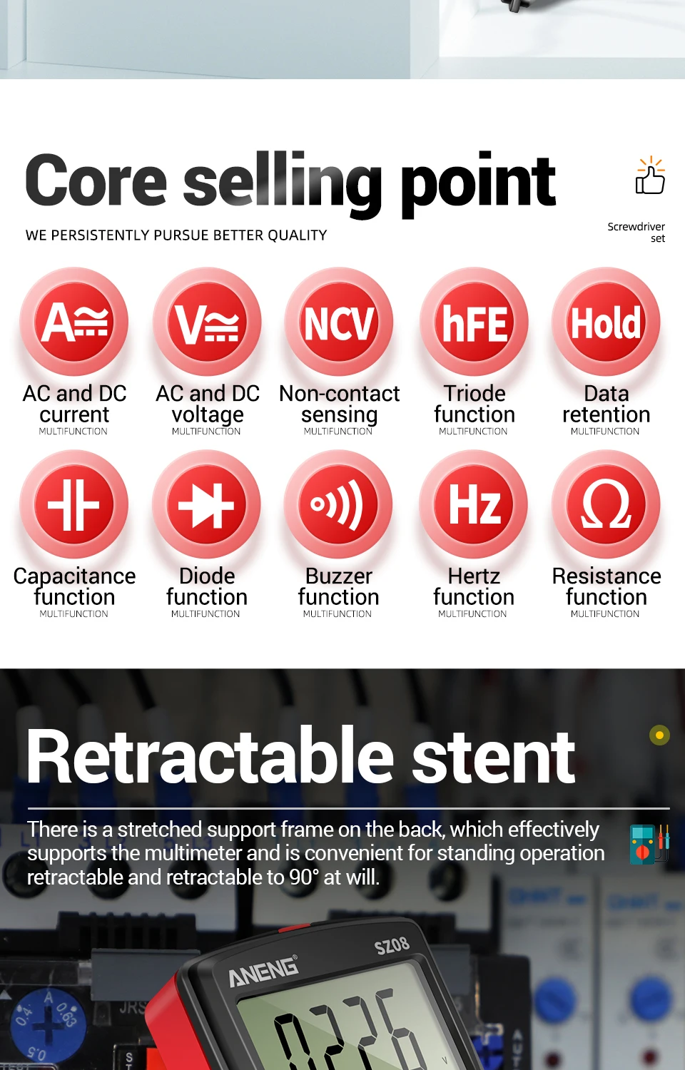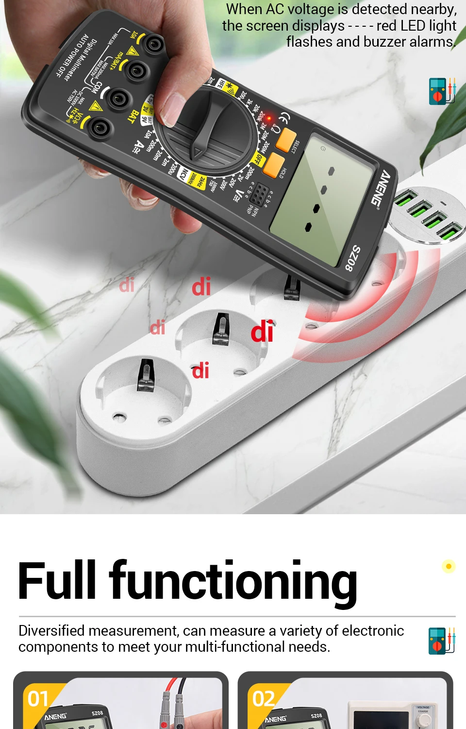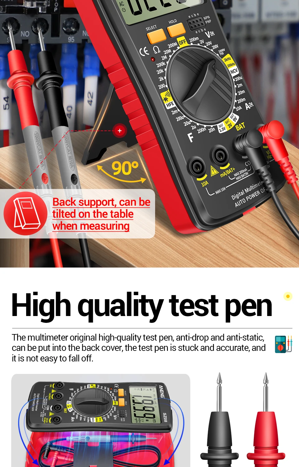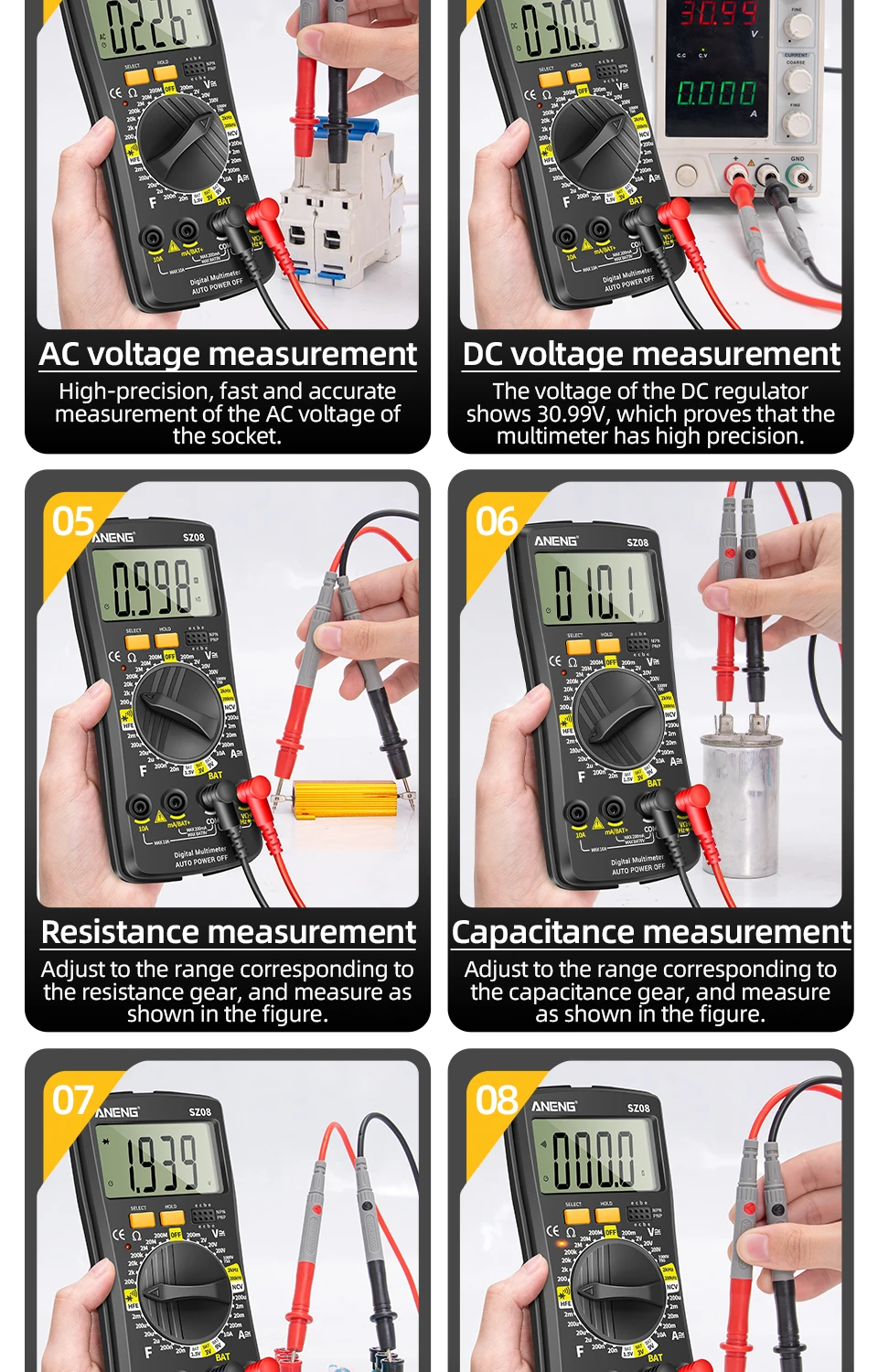 • Ultra-thin Design :The ANENG SZ08 Multimeter boasts an ultra-thin design, making it easy to carry and handle. Its compact size makes it perfect for professionals on the go.