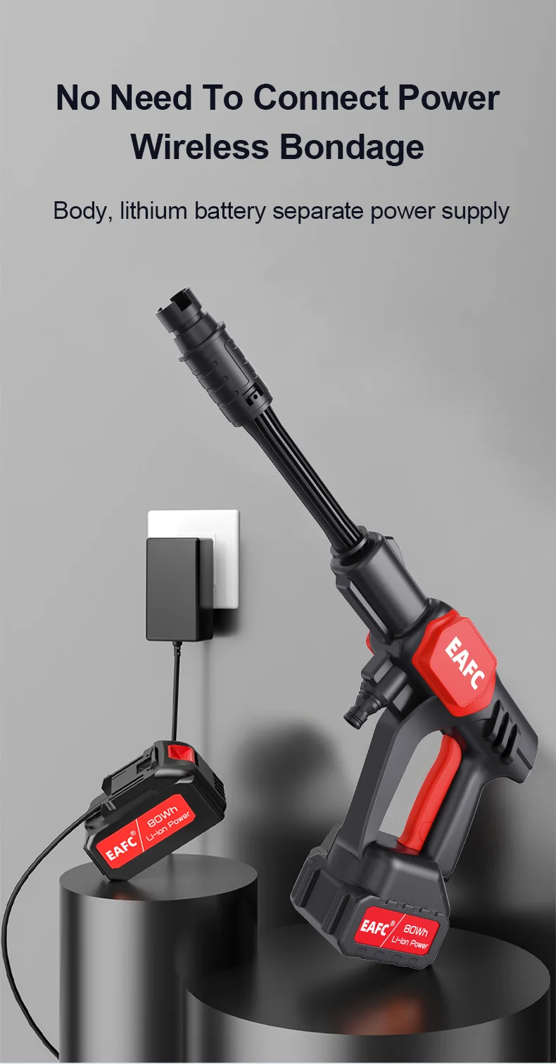 EAFC100Bar Portable High Pressure Washer Car Water Gun Lithium Battery Charging Cleaner for Garden Irrigation Spray Gun Home Gar
