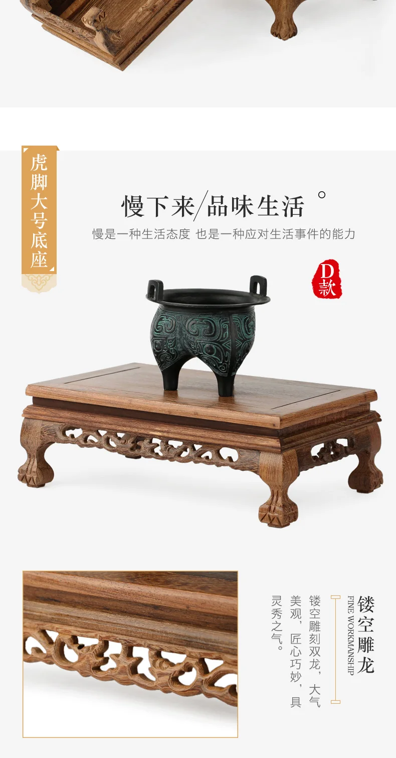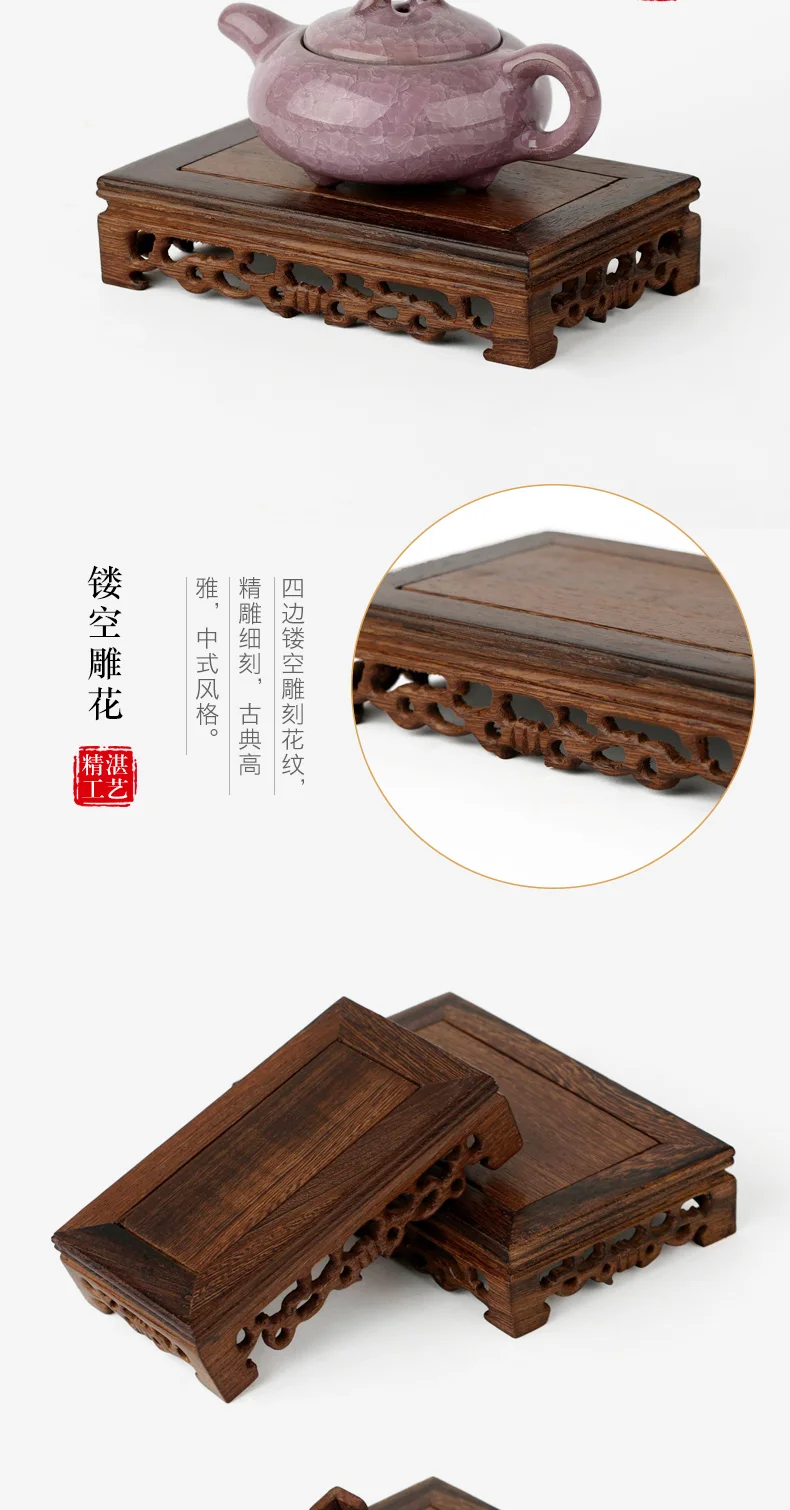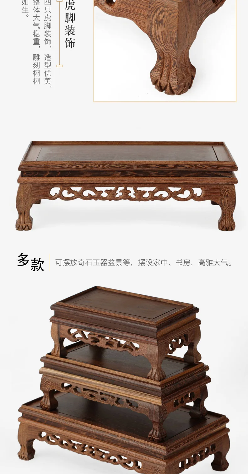 Quality Wood Tea Table Rosewood Carving Decoration Base Vase Buddha Kistler Display Rack Multi-use Rectangle Small Coffee Table