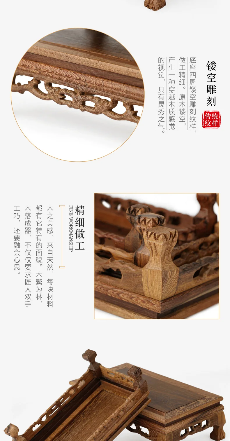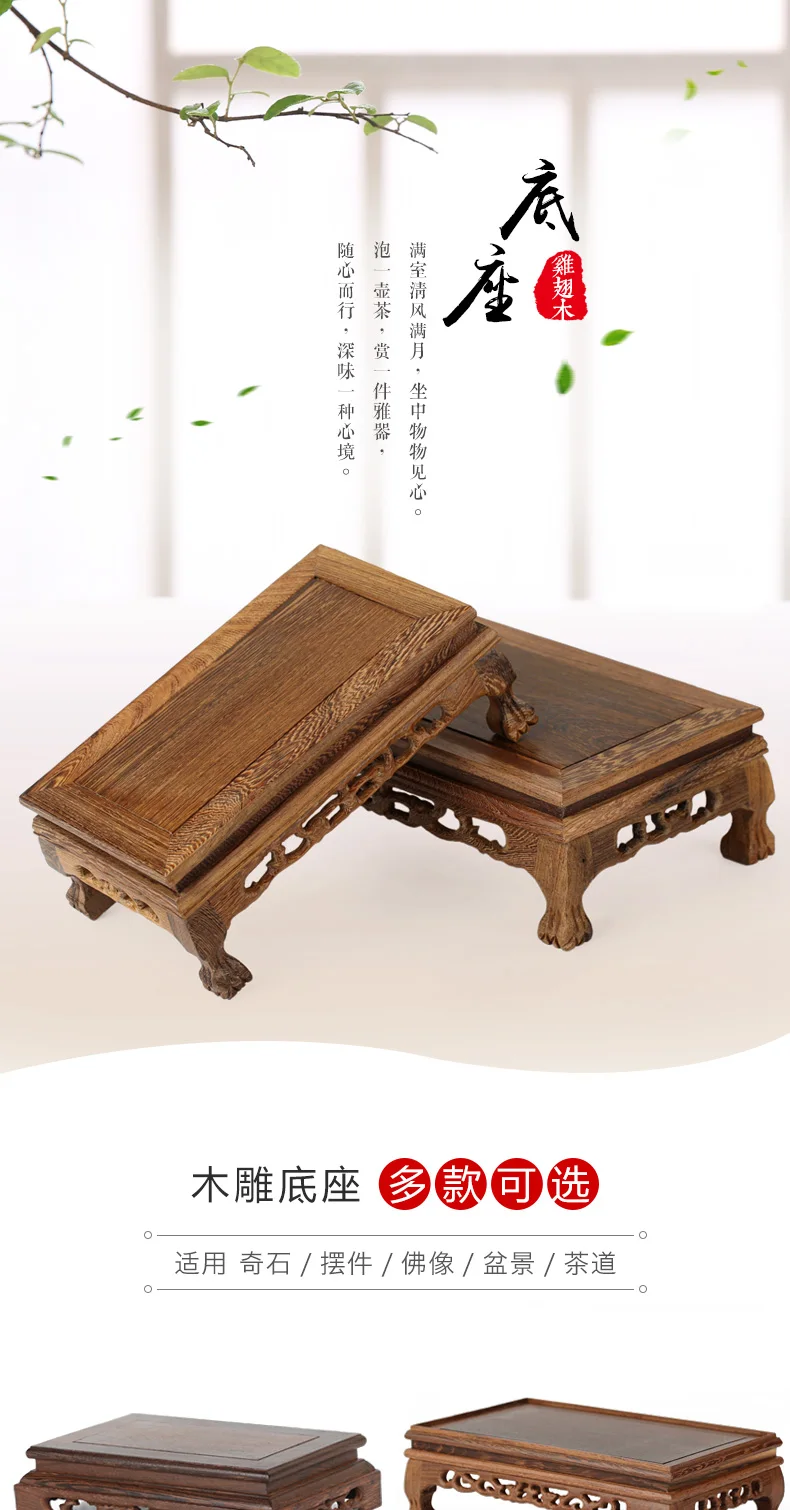 This chicken wing wood carved Buddha ornament base and solid wood bracket can not only be placed separately, but can also be paired with various strange stones and bonsai, making your home space instantly full of nature and elegance. Whether placed in the study, living room, or bedroom, it can add a sense of tranquility and beauty to your life.