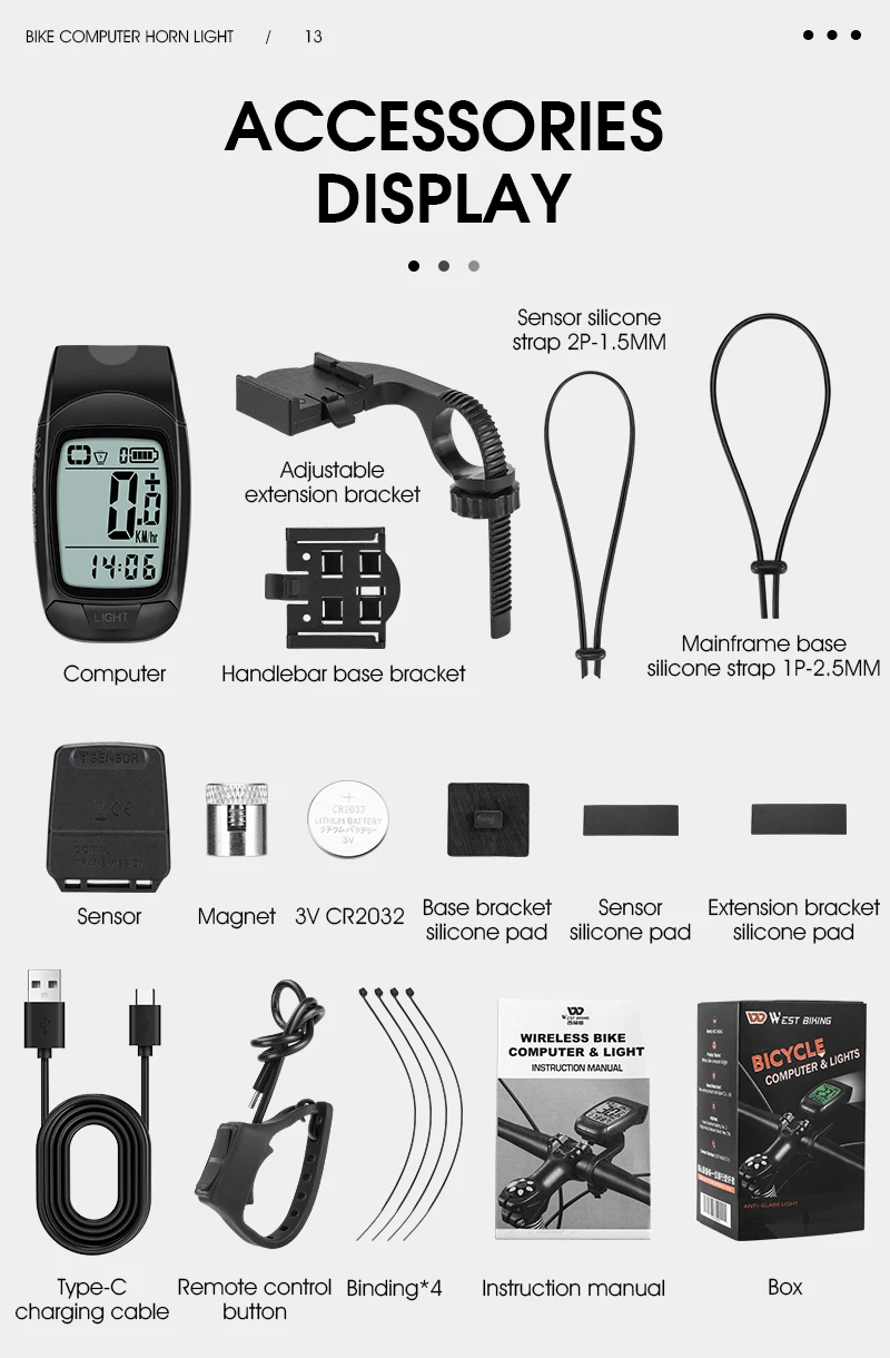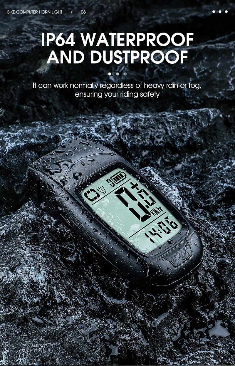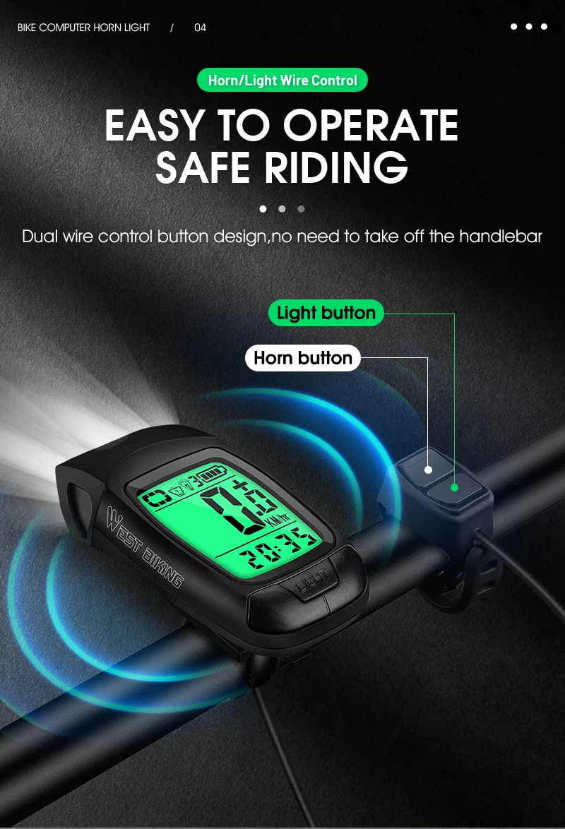 WEST BIKING 3 in 1 Wireless Bike Computer With Horn USB Rechargeable LED Flashlight Waterproof Bicycle Light Cycling Speedometer