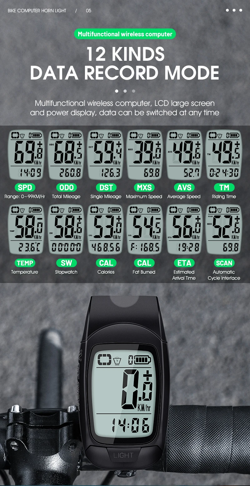 Including 22 sub functions such as total mileage maximum speed temperature stopwatch CAL