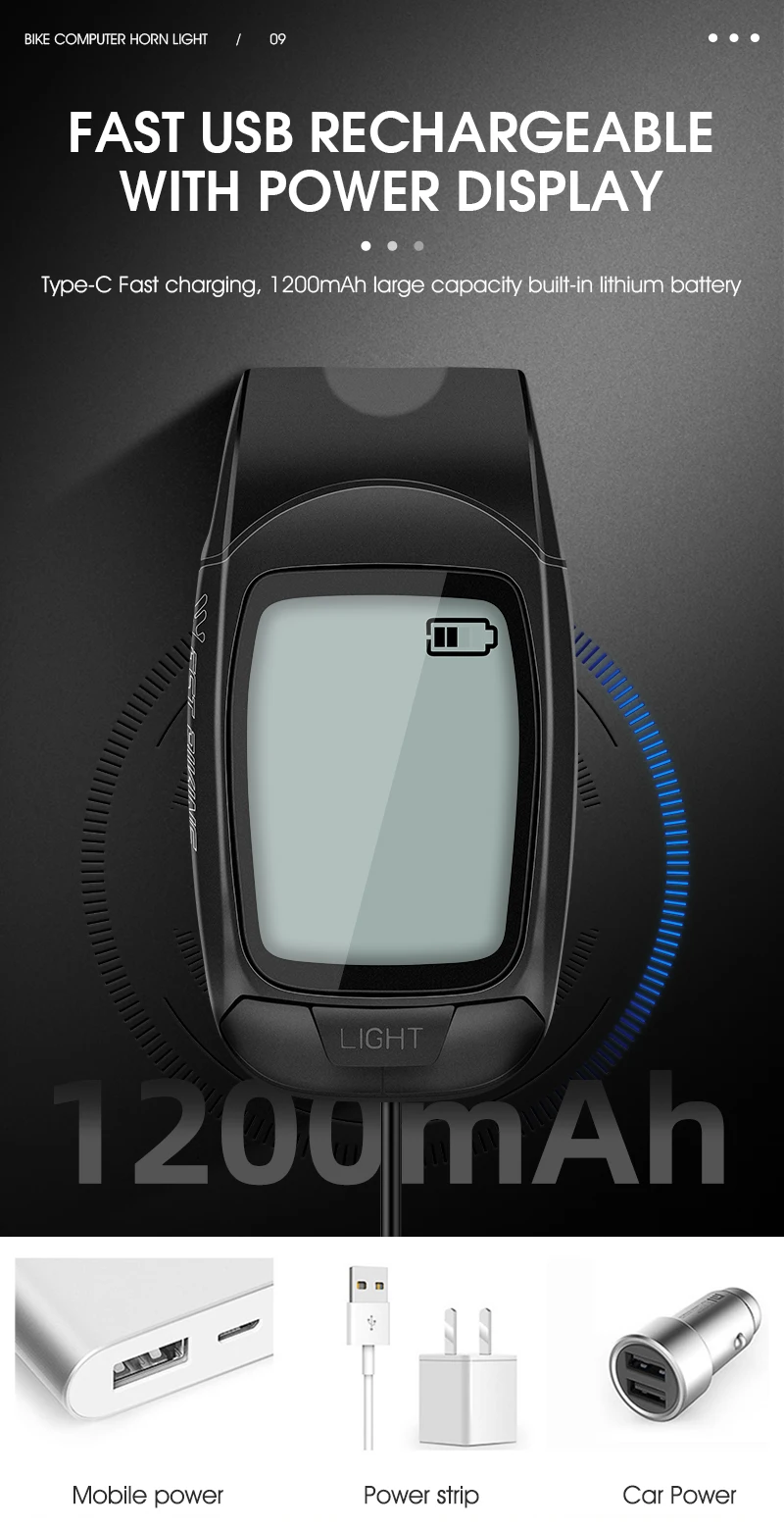 1200mAh battery, the standby time of bicycle computer is 2 years, and the light life is 4-6 hours