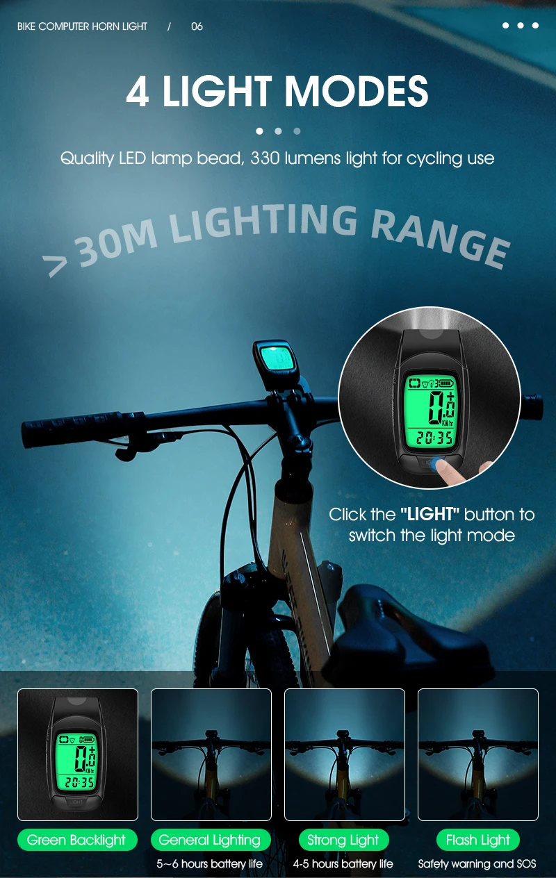 Name: 3 in 1 Bike Computer Horn Light